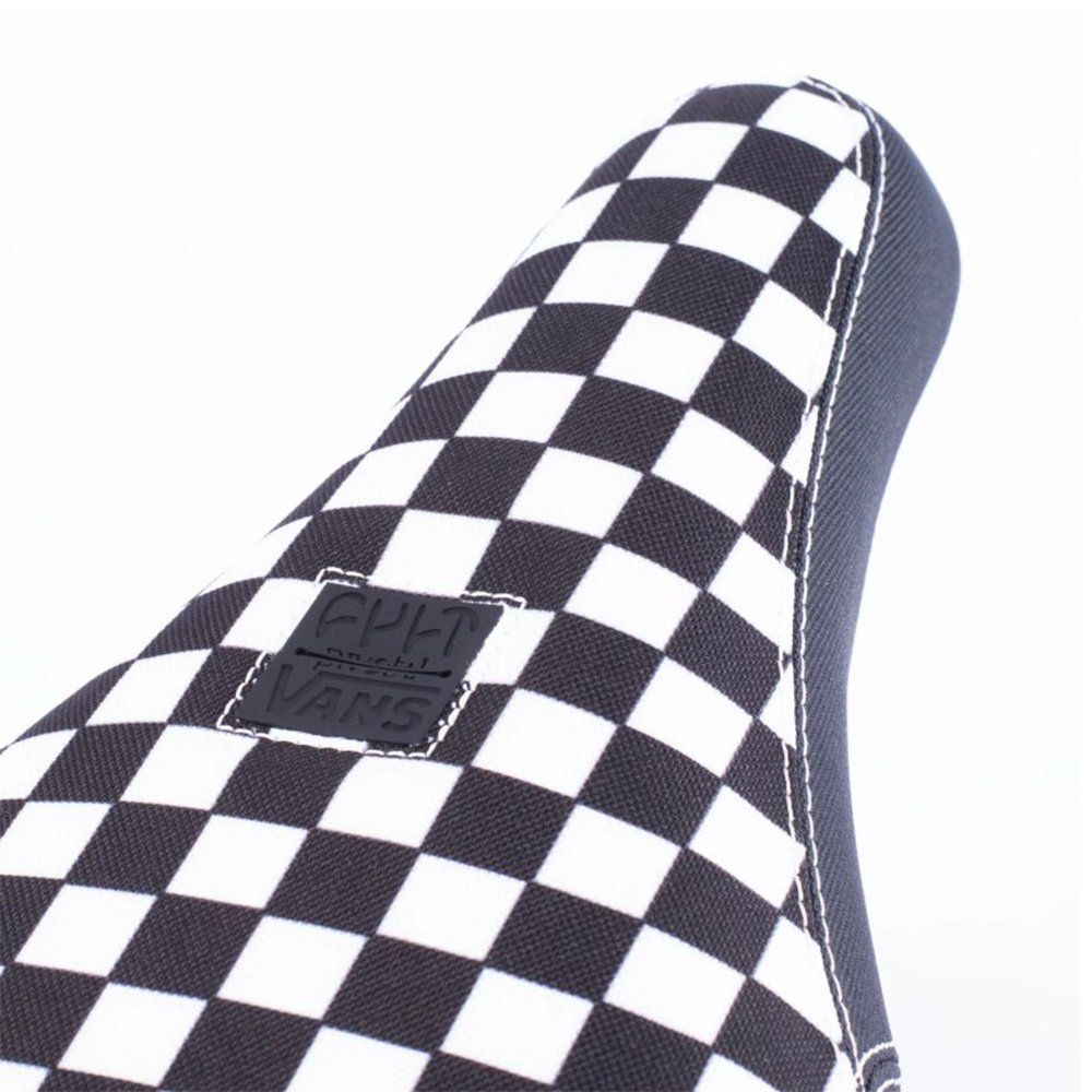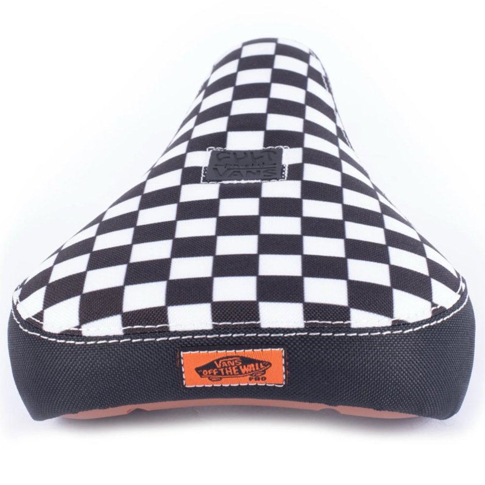 BMX sedlo Cult v povedeném designu, který známe z tenisek VANS. Odolná základna je opatřena FAT polstrováním potaženým plátnem. Uchycení je na Pivotal systém.